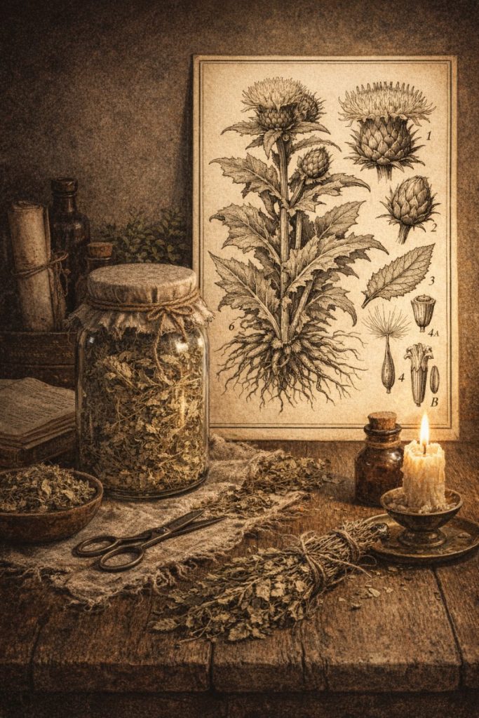I tu pojawia się praktyczny most między magią a ciałem: ostrożeń warzywny należy do astrowatych, a w tej rodzinie często powtarza się zestaw związków kojarzonych z regeneracją — polifenole, kwasy fenolowe, garbniki i flawonoidy. W badaniach nad gatunkami z rodzaju Cirsium opisywano m.in. aktywność antyoksydacyjną wiązaną z zawartością polifenoli, co dobrze tłumaczy, dlaczego „zioła oczyszczające” w praktyce ludowej tak często szły w parze z poczuciem ulgi i wyciszenia.[2]