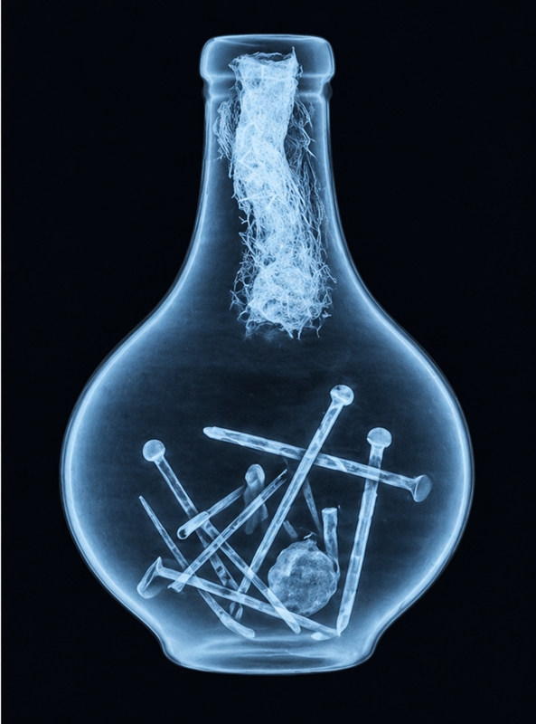 Jej siła polegała na połączeniu trzech elementów: osobistego nośnika, ostrych składników oraz miejsca ukrycia. Osobiste elementy, takie jak włosy, paznokcie czy mocz, miały tworzyć symboliczny ślad osoby, dla której wykonywano ochronę. Wierzono, że dzięki temu butelka działa jak energetyczna zmyłka, przyciąga do siebie szkodliwy wpływ i przejmuje go, zanim dotrze on do człowieka lub domowników. Ostre składniki, takie jak szpilki, gwoździe czy haki, miały zatrzymywać, wiązać i neutralizować tę energię wewnątrz naczynia. Miejsce ukrycia również miało znaczenie, ponieważ butelka stawała się częścią ochrony domu, jego cichym, niewidzialnym strażnikiem. W takim ujęciu nie była jedynie przedmiotem zakopanym pod podłogą, lecz celowo przygotowaną pułapką na to, co miałoby zaszkodzić osobie lub przestrzeni.