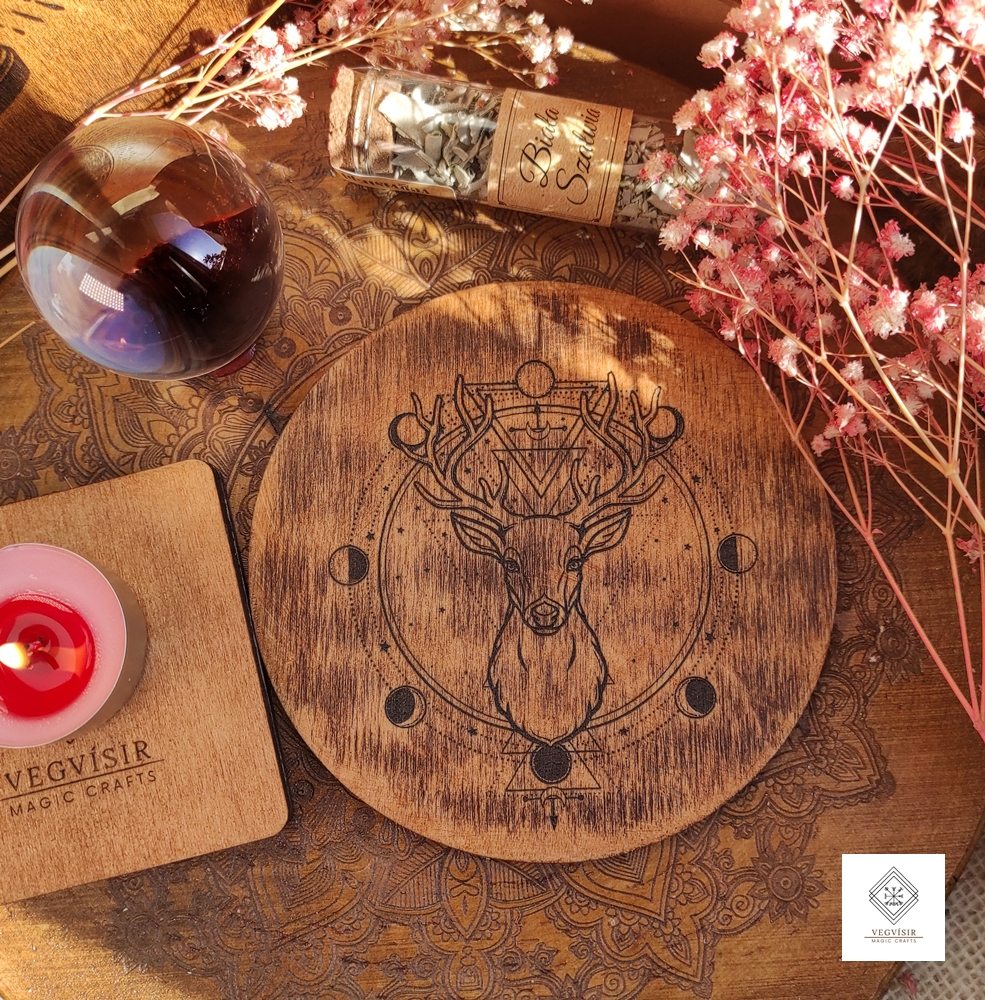 Podkładka ołtarz obrazek magiczny Jeleń brązowe stare drewno 12,5 cm