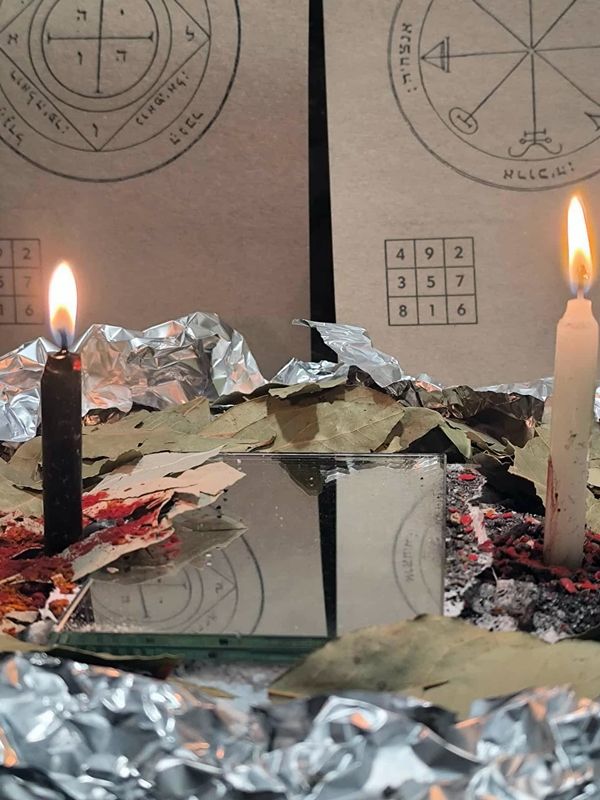 W mojej pracy wykorzystuję m.in. rytualne świece (w tym figuralne), oleje magiczne zaklinane przez siebie, mieszanki ziół, zaklinane słoje ochronne oraz modlitwy psalmiczne. Korzystam również z energii osobistych nośników – takich jak imię, nazwisko, data urodzenia czy zdjęcie – by rytuał był jak najbardziej precyzyjny i dopasowany.