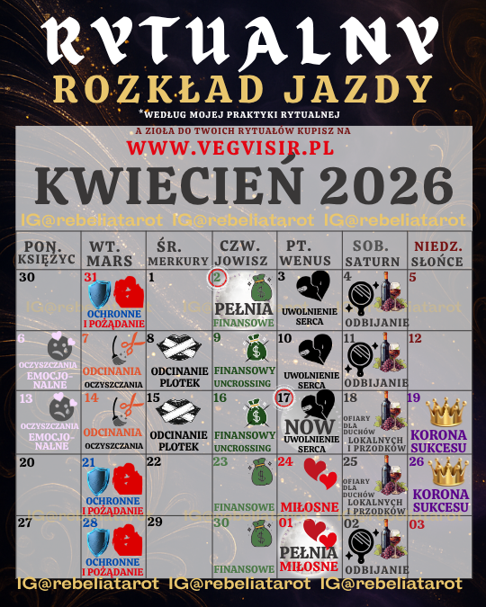 Każda praca magiczna wymaga przestrzeni, by zadziałać. Rytuały warto planować w zgodzie z kalendarzem planetarnym i księżycowym – tak, jak to robię w mojej praktyce. I warto utrzymać minimum tygodniowy odstęp.