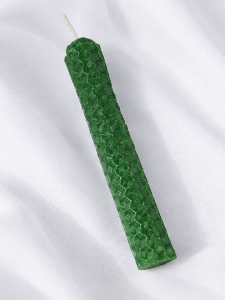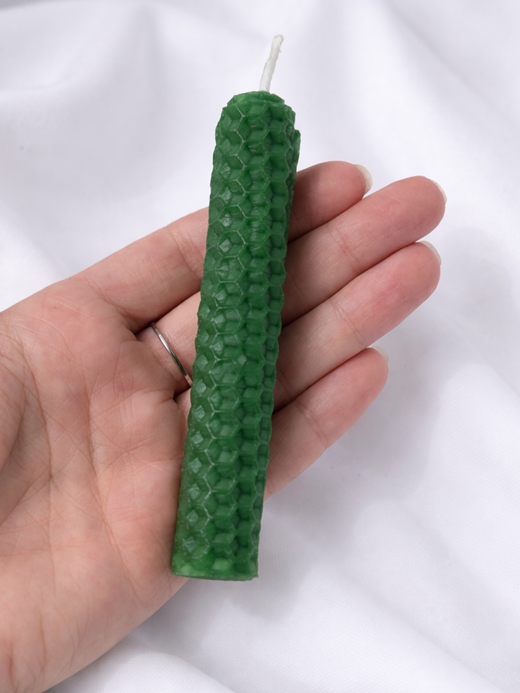 Zielona świeca woskowa rytualna 10 cm – DOBROBYT płodność, stabilizacja, wzrost